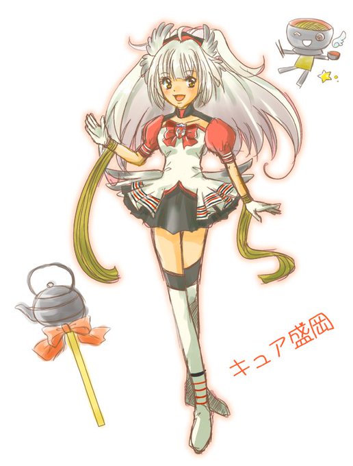 描き直した-。 大空に羽ばたく双翼の鶴、キュア盛岡☆ 武器はハートフル南部ロッド、悪の心を打ち砕く(物理)ぞ! 腕にヒラヒラしてるのは蕎麦です。 #サポキュア