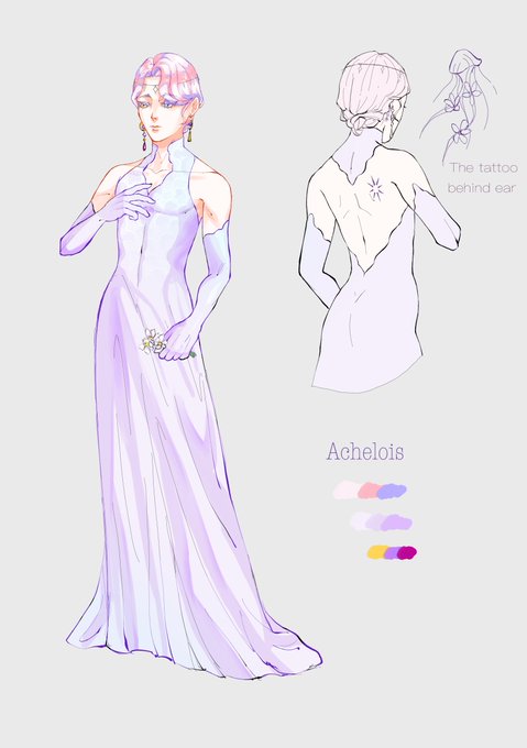 Since Achelois wears wedding dress, Darklois should wear mourning dress, but I want to keep his back naked so....😳