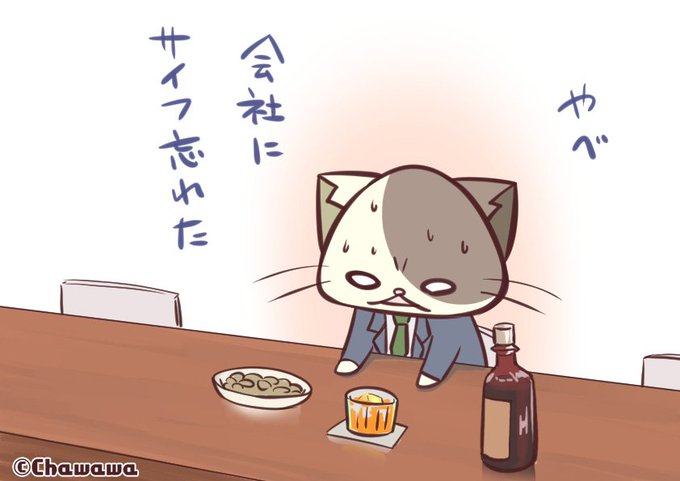 今週もお疲れ様。仕事終わりの一杯は最高だなぁ。 #じょぶねこ