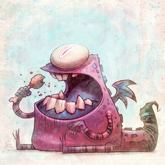 Mr. Chomps ventures bravely toward a 3 day weekend. #jobus #joeolson #monster #dragon #characterdesign #drawing #digitalart #procreate
