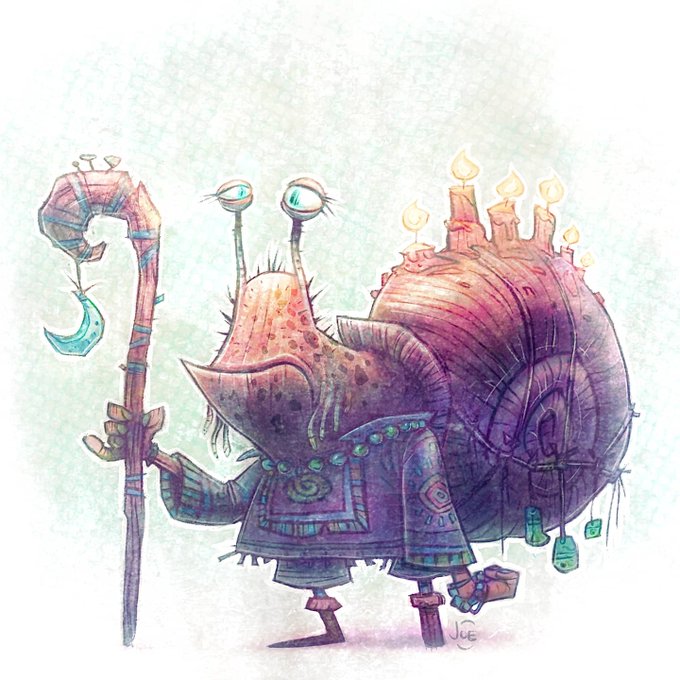 Old Snahlgweh, gastropod seer of the crescent mucus clan. #jobus #joeolson #characterdesign #creature #snail #ancient #procreate #digitalart