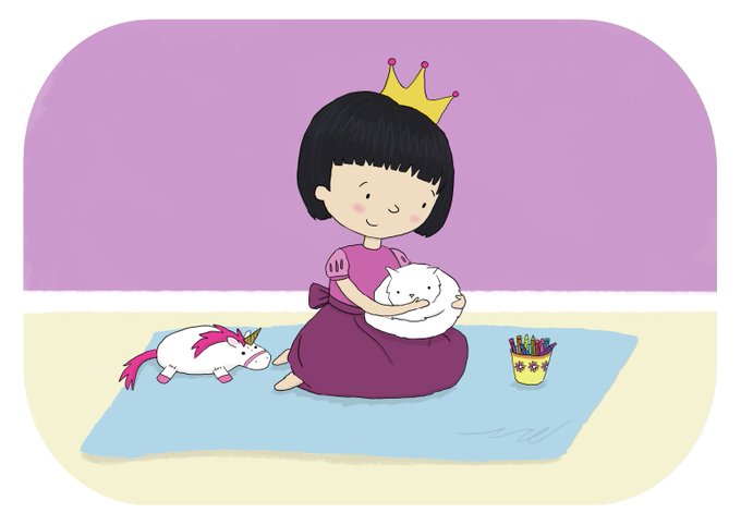 My #colour_collective this week is a princess and her little friend #magenta #illustration #cute #kidlit #princess #cat @Clr_Collective