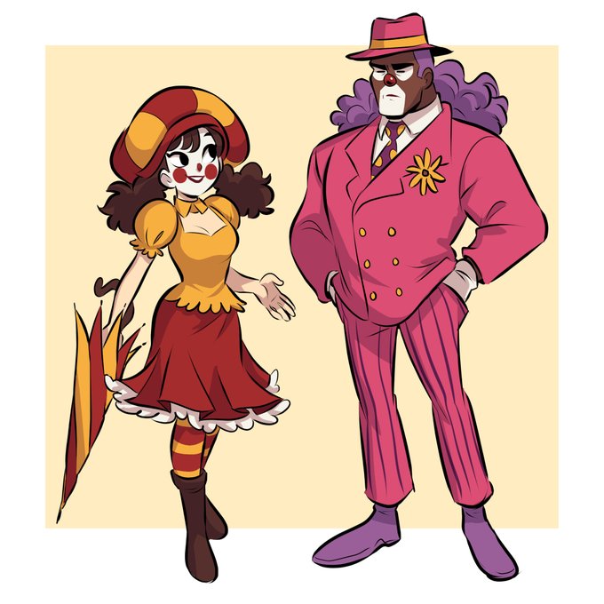 Binky and Mustard wearing the outfits from their original concept art (circa 2016)