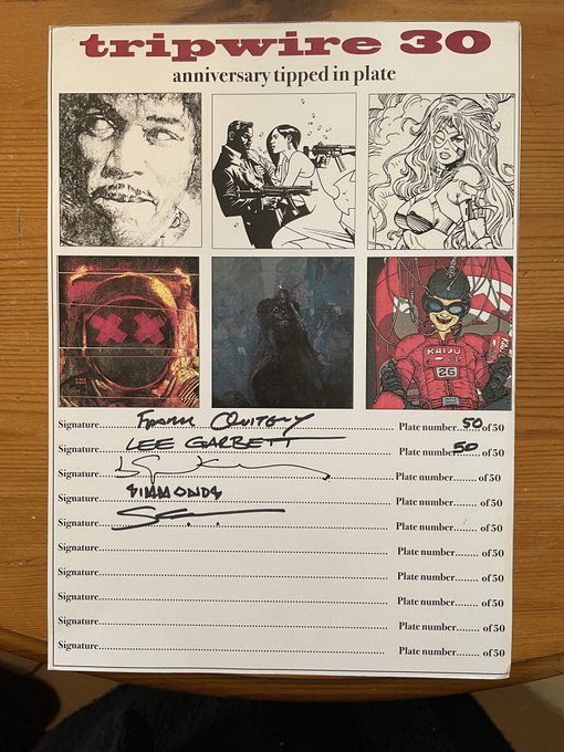 closing tomorrow, people only have Thursday and Friday to pledge on our Tripwire 30 anniversary limited hardcover edition funding on @WeAreZoop. Just one signed plate left. Plus cool add on limited prints by people like @sinKEVitch @LiamRSharp @DavidMack