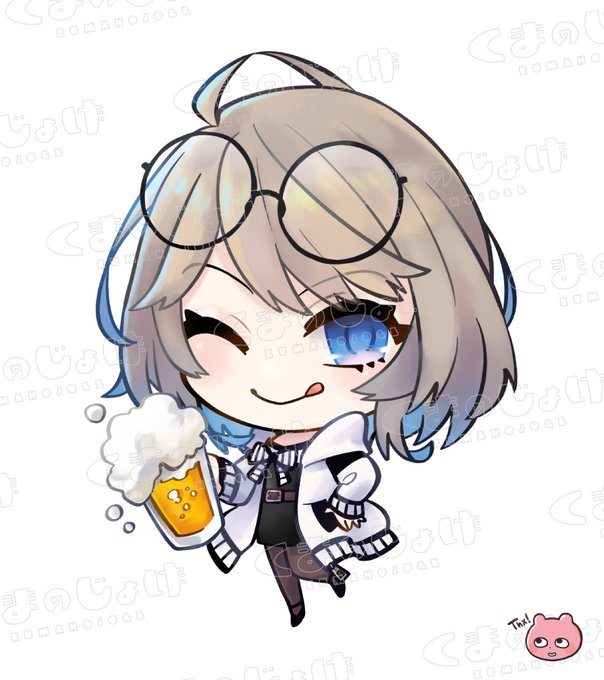 水無月みづきさま(@mnzkmdk_iriam)のご依頼でSDキャラクターイラストを制作させていただきました!こちらはリスナーさんへのプレゼント用アクリルキーホルダーになるそうです🎁✨🍻カンパーイ!
