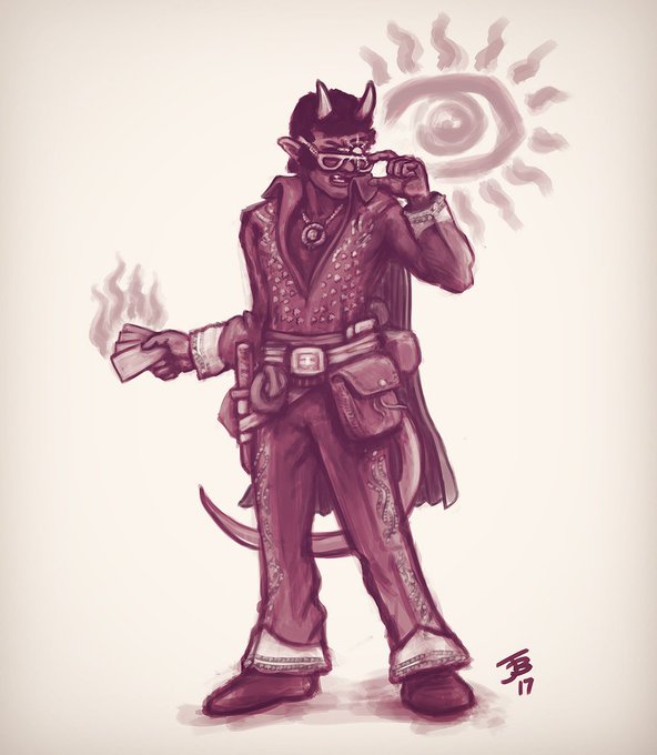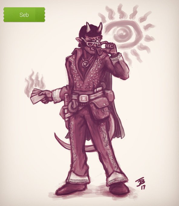 Give em that evil eye, Smooth Seb. My tiefling cartomancer from @NewMutant's Pathfinder game, @PeridyymShift. #DnD #fantasyart #Pathfinder
