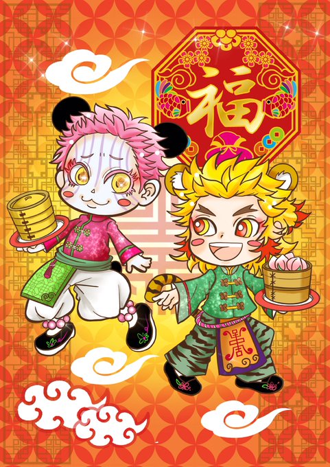 5月の猗窩煉オンリー用にたまに絵を描いてます🐲👲🏮🐼 きょーじょろーの顔が可愛く描けない病で辛かった(o´Д`) #猗窩煉