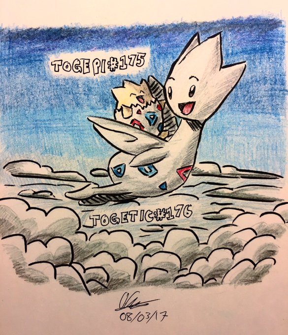 Soaring on #day12 of my #pokemon art challenge are Togepi and Togetic.