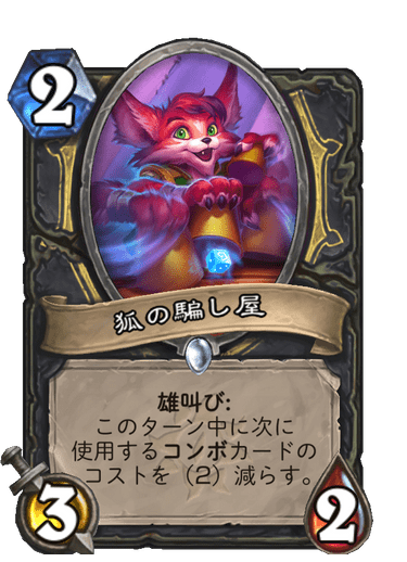 最強:狐の騙し屋はコンボのデメリットをほぼなかったことにしつつ3/2出せるのはヤバイ(やばい)相性のいいコンボが増えたのもありテンポやアグロローグが一層強くなる