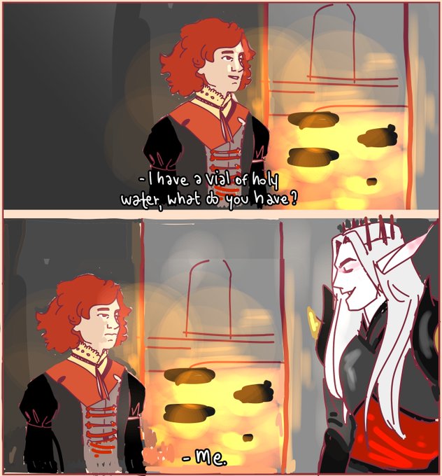 a quick commission from my luvly @WaywardBeat of their drow bard and @persychan's wizard barovian lass 's son, (born well after leaving the cursed native land):