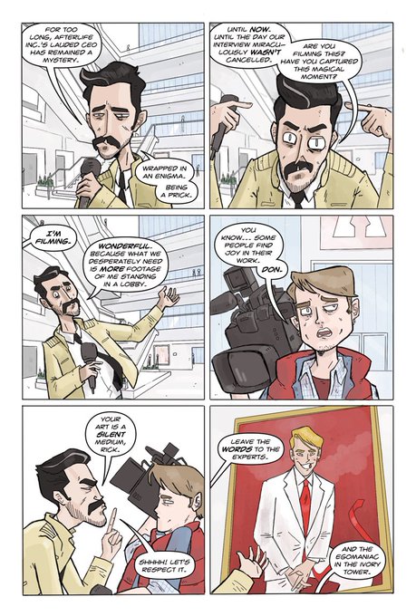 Massive thanks to @KitDraws for capturing our working relationship so perfectly in the latest page of #afterlifeinc