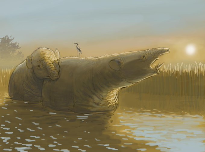Stegotetrabelodon (giving birth), Barytherium and Numidotherium (yes, it is that weird)