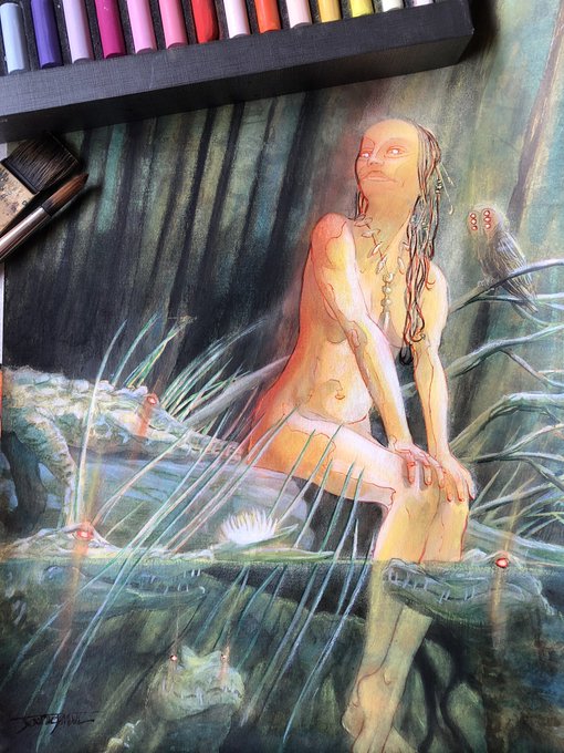 Finished the last painting for Godkillers now we finish the layouts & it’s off to the printer then kickstarter time! No stream now for a week then it’s back to our post human condition graphic novel The Burlap Daughter! Thank you all for all your support!