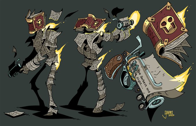 A book filled to the brim with writing so bad that it took on a mind of its own and started writing itself! Now it's armed with a prose-pistol and can dole out the dull and confusing words whenever it pleases, bolstering its body of work while blasting adversaries!