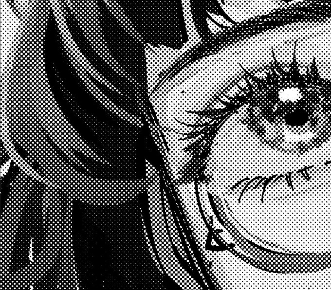 今回、リソグラフっぽい印刷出力にしたかったので、網点加工したものを一度プリントアウトしてスキャンしたものを元データに乗算し、スミ一色刷りデータにしています。画像は別データのビフォーアフターですがいい感じにムラが出ているのがわかる……