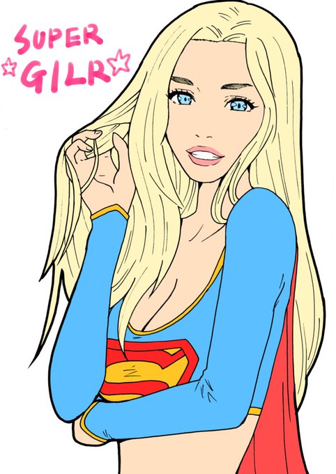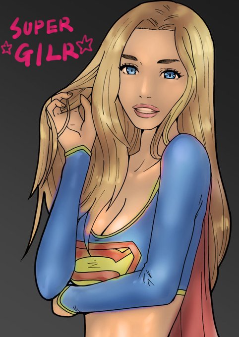 らくがきです。 いろいろ塗り方試してみました。 #スーパーガール #金髪 #アメコミ #Supergirl #blondehair