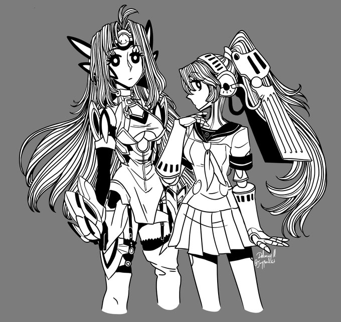 two blue haired red eyed robots, that I love #Xenosaga #ゼノブレイド2 #persona #cutiesaturday