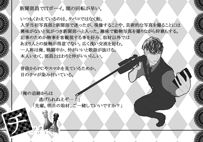 こちらの企画様【@CM_4696】に参加させていただきます~! 扱いにくい子だとは思いますが、仲良くしてくれる部員さん、同室さんいらっしゃったら気軽にお声掛けください!! 飴ちゃんくれると喜びます。 #チェックメイト_CS #チェックメイト_黒派