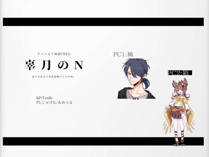 20↑ ボイセ・テキセ両方やります CoC6版メイン アイコン(VOID HO1)→ @yor_urma ヘッダー(ブルキラ自陣)→@0mkky0