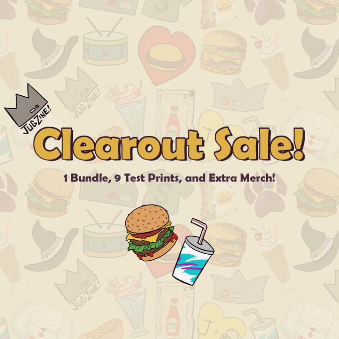 Long time no see! Perfect time for a clearout sale! Check out the link in the bio to grab the last bundle, a test print, or some leftover merch 🍔🌟