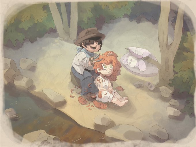 a sweet and shy painter guy 💙🎨 His name is Noë and he likes painting little animals surrounded by flowers