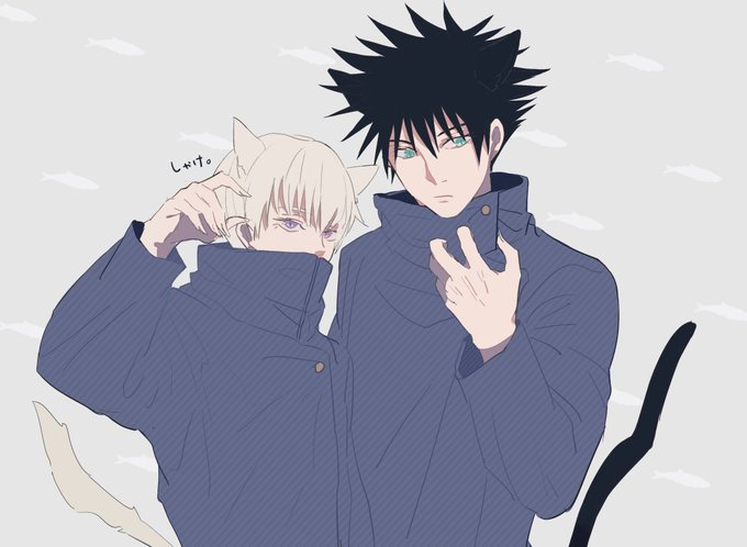 猫巻先輩とウニ黒くん 0時過ぎた瞬間塗りこむ気力が無くなったので供養…🐾🙏 #呪術廻戦ファンアート
