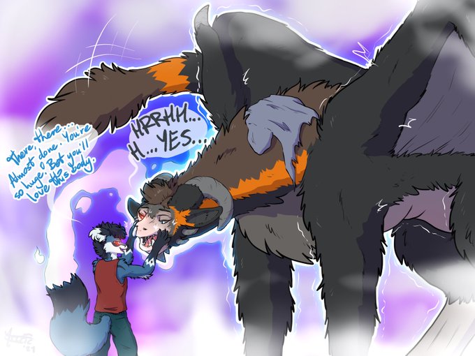 YCH commission for @werenimal! Arctic's almost done turning them into a fuzzy dragon. Quite the difference in size! 🐲✨