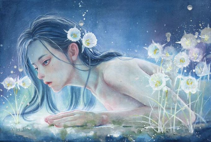 今を生きる女性のふとした瞬間に現れる心情を、淡い色彩で抒情的描く井上知美、闇の中から光を求めるように現れ、時に刺すように、時にすがるように、