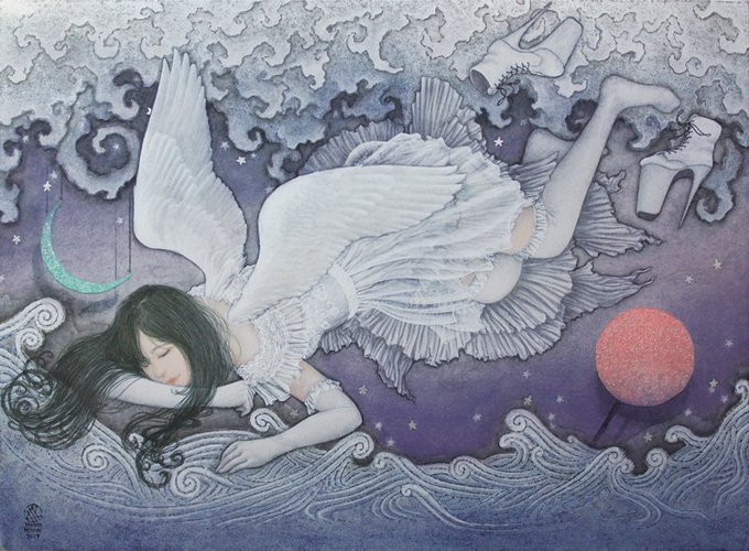 にこやかな表情の陰に隠されたアンビバレンスな心理、それは時に醜いものであるかもしれない。が、そういう部分も含めて、「ヒト」をやさしい絵画で表現しようと試みているのです。