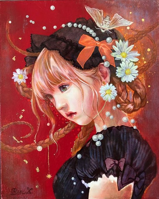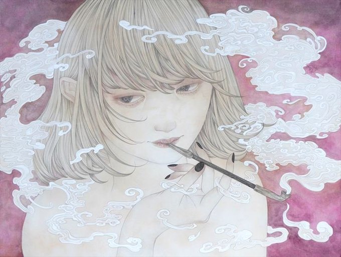 モチーフに図像や色を重ね合わせたデジタル作品で使われるレイヤー効果のような表現を取り入れるなど、人工的で多層的なイメージを描いています。