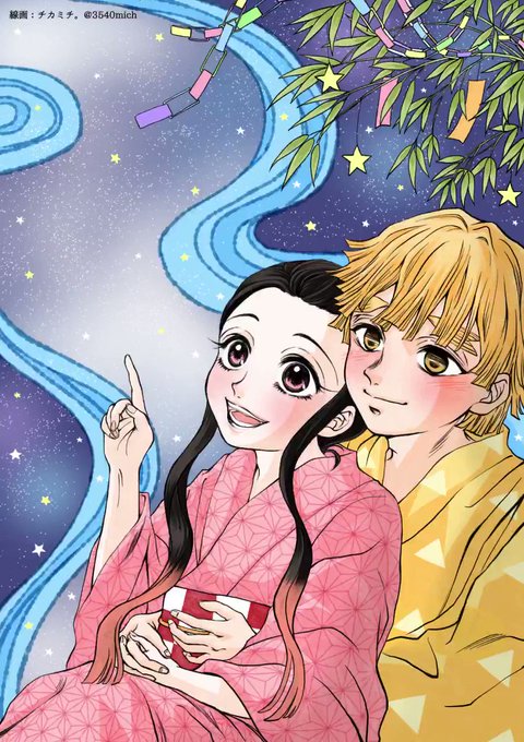ラヂヲに触発されて描いた寝言⚡️。 夜のお散歩に行きたい🎀ちゃん。 ⚡️がどんな夢を見てるかは、ご想像にお任せします。 白状すると、浴衣から覗く脚が描きたかったんです…。