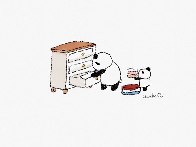 ころもがえパンダ #イラスト好きさんと繋がりたい #イラスト #illustration そろそろ冬服を出しましょうか