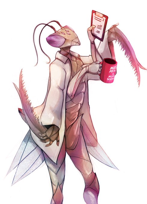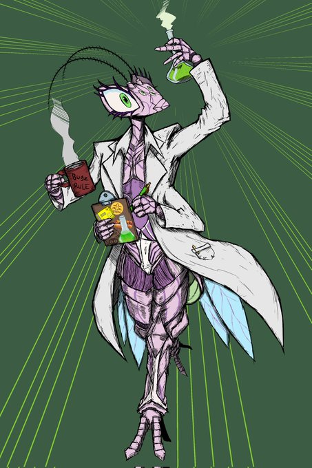 @prywinko This i Xhiela, a scientist mantis from an rpg campaign that i played in and commisioned a piece of for my birthday earlier this year.