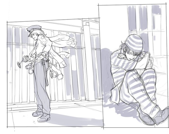 これは、私が子供の頃初めて描いた自主制作漫画『デラックス刑務所』の主人公二人を、今の絵柄で描いたらどのようになるか試したものです