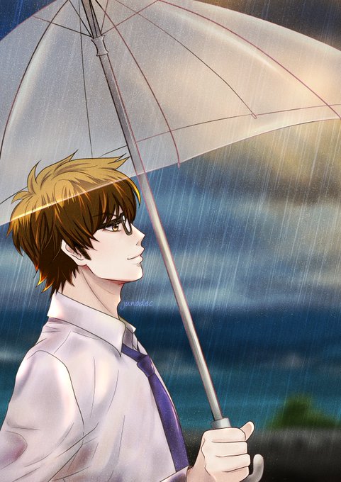 Now, I give you my Old fanart, Miyuki Kazuya in his school uniform smiling in The Rain 😆😆