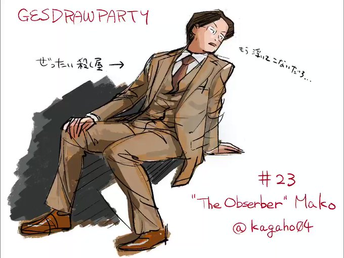 #じぇすどろパーティ #GESDRAWParty 23回目の今日は“まこ立会人”さん @kagaho04 さん😄後半に向かってポーズがどんどん不穏な空気をまとって行きます😆職業わかった!!