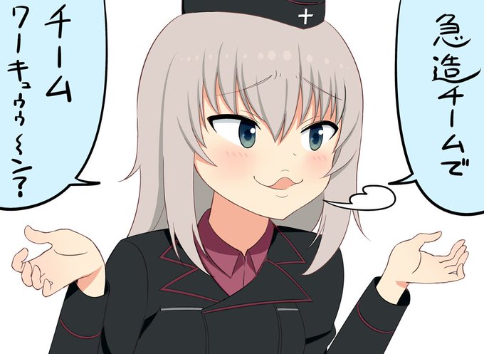 なまちょこさん ( @namatyoco )のリリィと松井さ ( @yasutsugumatsui ) の典子が並んでトレーニング中でニヤリとした