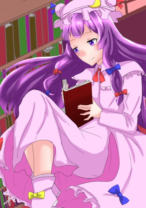 姉のリクエストでパチュリー・ノーレッジ描きました。 帽子のオンオフ差分なぜ描いたんだ…。