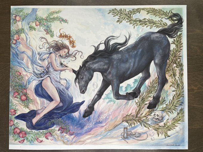 絵のプリントが出てきた〜 “レタラチカップカムイ” 私の出身地辺りに伝承があったアイヌの白鳥の女神様🦢 “Reter-cikap-kamuy” my Ainu mythology piece from 2010. I’m from Hokkaido, Japan and her myth was mainly told at my hometown area.