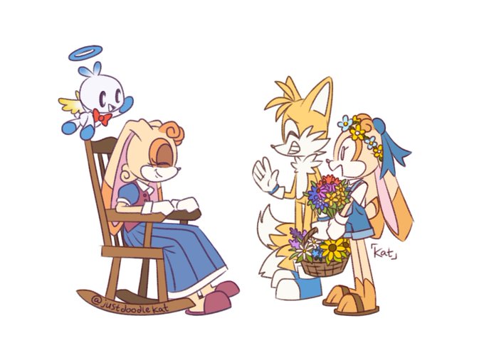 Tails and Cream as adults visiting an elderly Vanilla