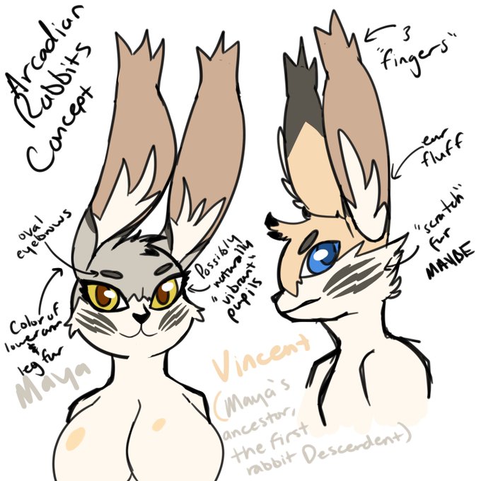 Concept stuff for the rabbits on Arcadia. Still thinking on the actual marks and the coloring of them, or even if I'll keep them. Course here's Maya, BUT then her ancestor, Vincent.