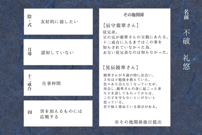 十二戒合「勾陳」 不破 礼悠(@woharusousaku ) #じゅうたんcs #十二戒合cs