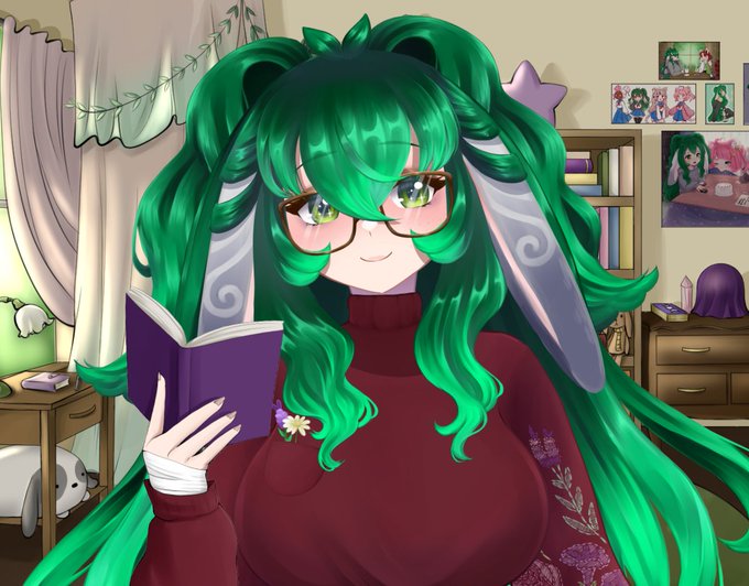 I'm Juniper, the accidental bunny girl who lives in a bookstore! I'm an artist and variety streamer hoping to bring comfy and chaotic vibes to your life!💚✨