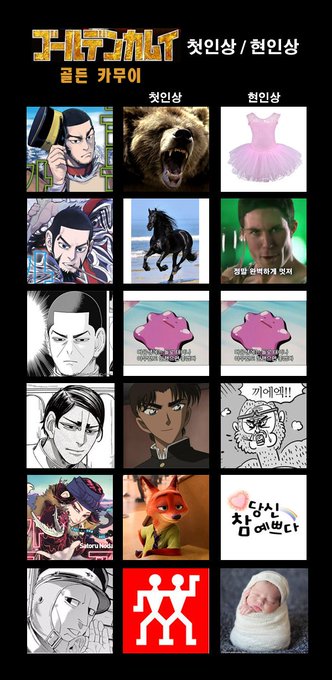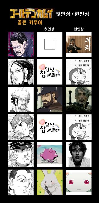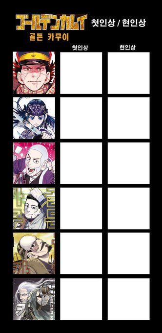골든 카무이 첫인상 현인상 표 올려요! 다른분들 것도 궁금해~