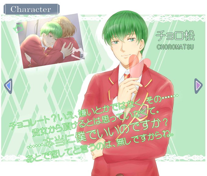 おそ松F6ver.乙女ゲーパロ『まつプリ』の続編(バレンタイン仕様)です!続編はPita()に移植しましたので、お持ちでない方は是非ご用意を。キャラ紹介兄松組。 #夢松 #おそ松プラス