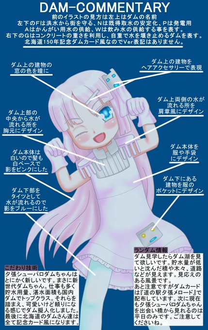 厚幌ダム擬人化。#擬人化 解説付き #イラスト。「台形CSG、それは日本の最新ダム技術。ゆえに3倍凄いんです」#ダム擬人化