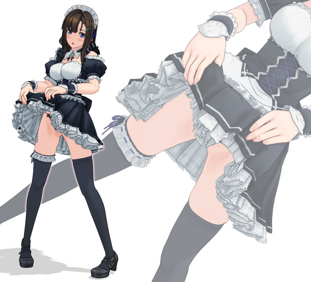 えむちゃんも脇ファスナーだぞ! 前と後ろの紐はウェストのサイズ調整用だぞ! 襟はバニーガールでよくある襟だけのアレだぞ! 腰のリボンは解けるぞ! #半脱ぎ絵お待ちしております