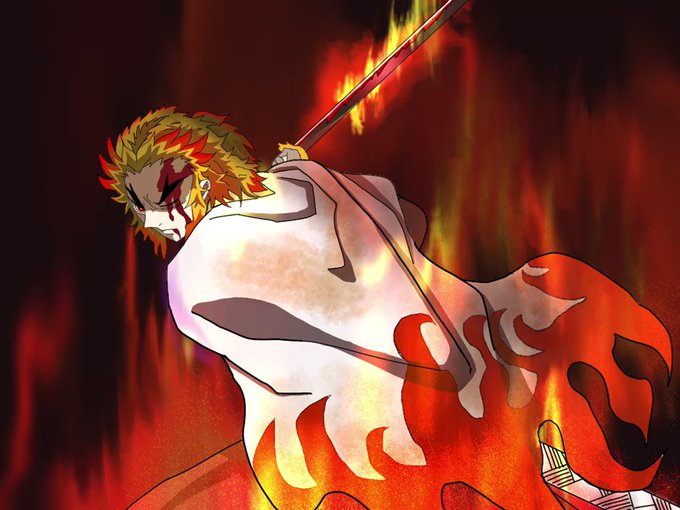 @momo_2498lm 去年の今頃、無限列車を見た勢いでこの煉獄さんをipadで模写を始めたところ(数ヶ月で続かず😂)