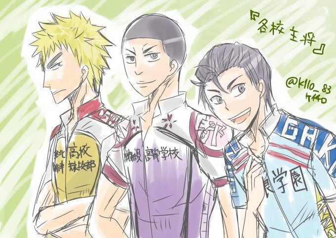 「各校の主将」サッカーとかでユニフォーム交換とかあるからジャージ交換があってもいいよね?というネタ被り上等のネタで…。1時間短い! #弱ペダ版深夜の真剣お絵かき60分一本勝負