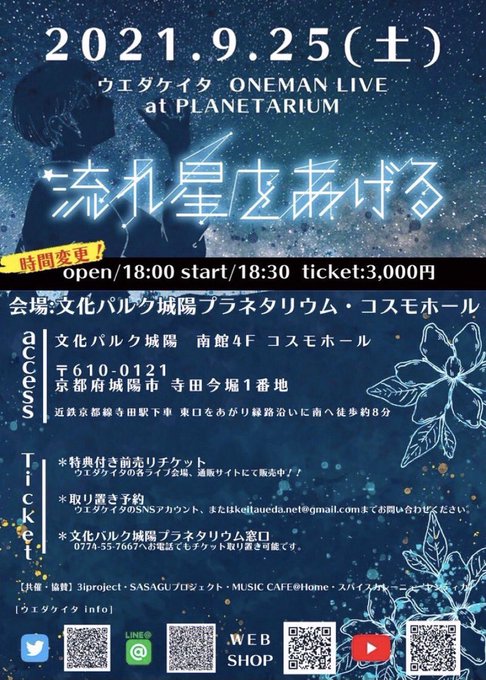 今日はキャスおやすみしますが、9/25プラネタリウムワンマンの情報チェックやご予約はグイグイ待ってます!!